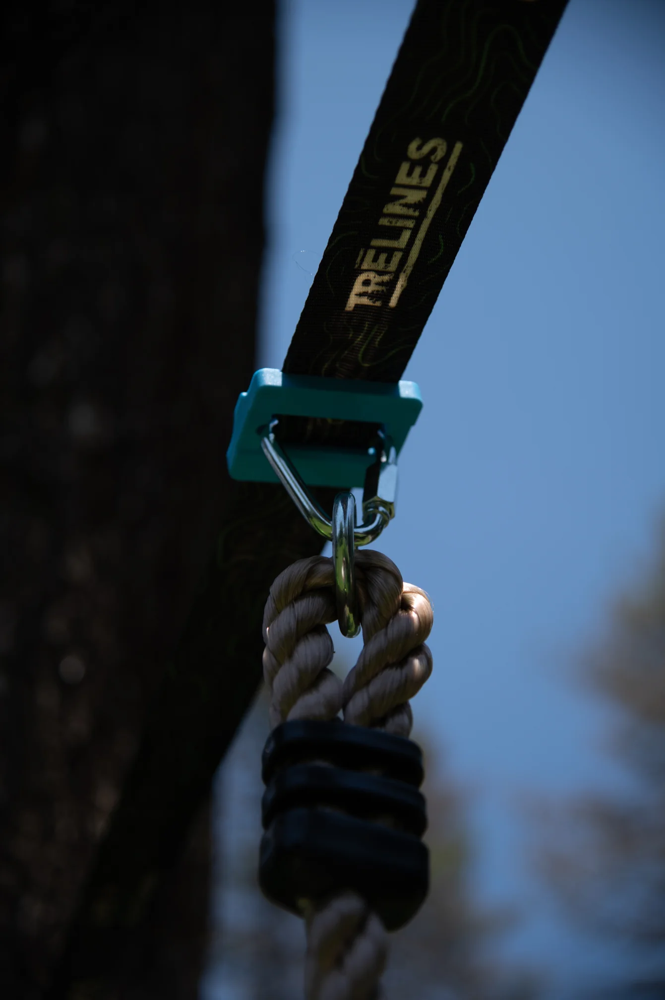 Super popular Swing base allows kids a solid base to give them stability as they climb up the rope. Fun also to sit on and use as a swing too. Easy set up that attaches to Ninja or Swing Set line. Includes a carabiner Treline Clip. Climbing holds build confidence and perfect to use to transition to outer ninja obstacles.