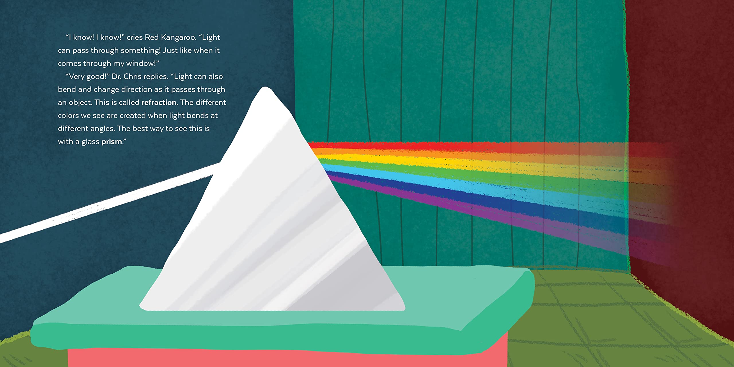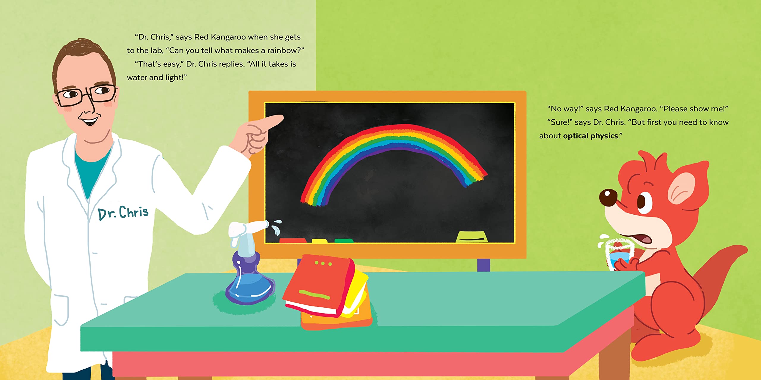 Rainbows are beautiful! As Red Kangaroo admires one arching across the sky, she wonders where rainbows come from―luckily, Dr. Chris has the answer! With just two ingredients and three simple steps, Red Kangaroo learns all about the science behind these wonderful, colorful sights!