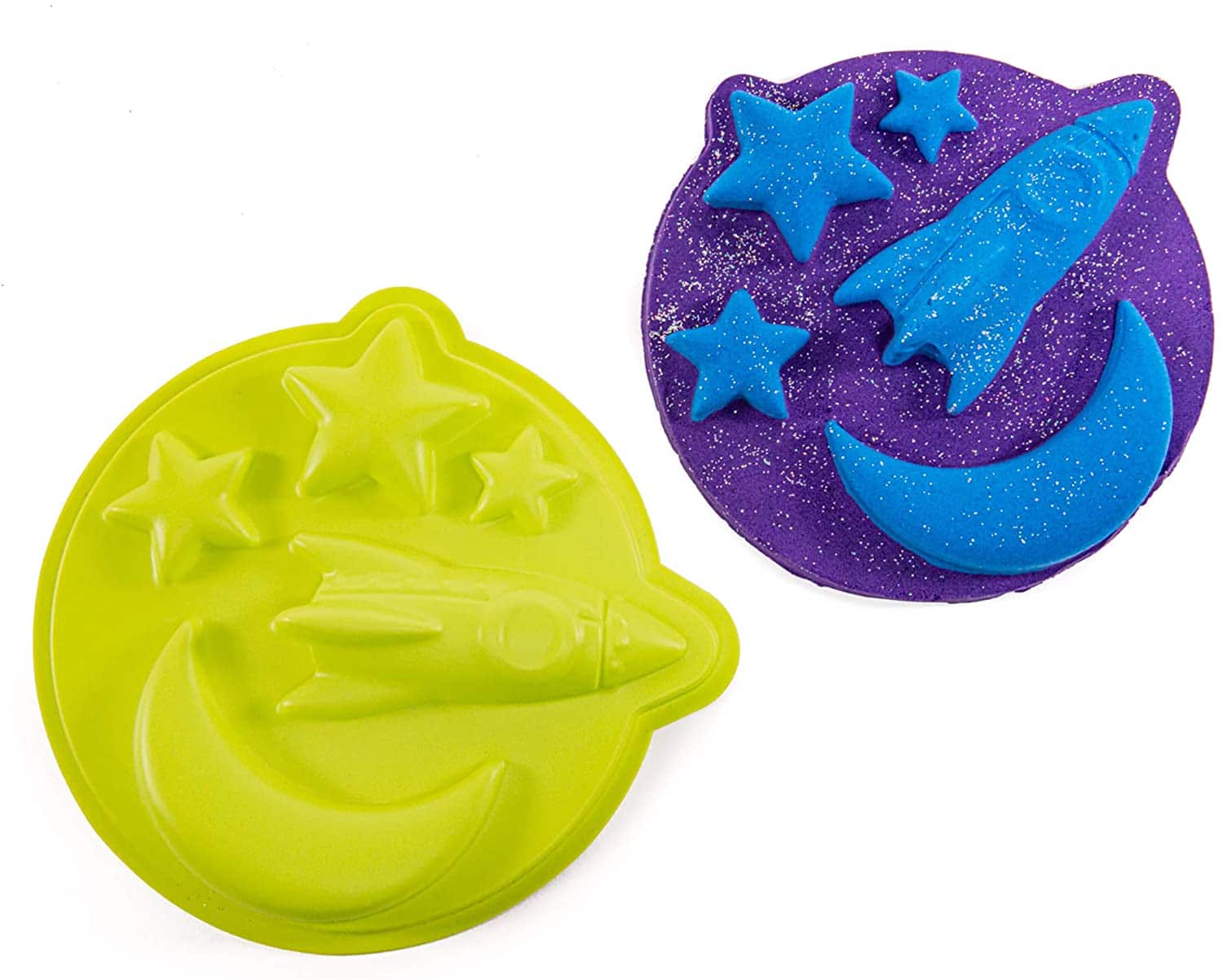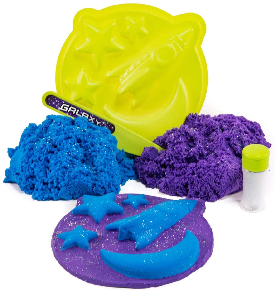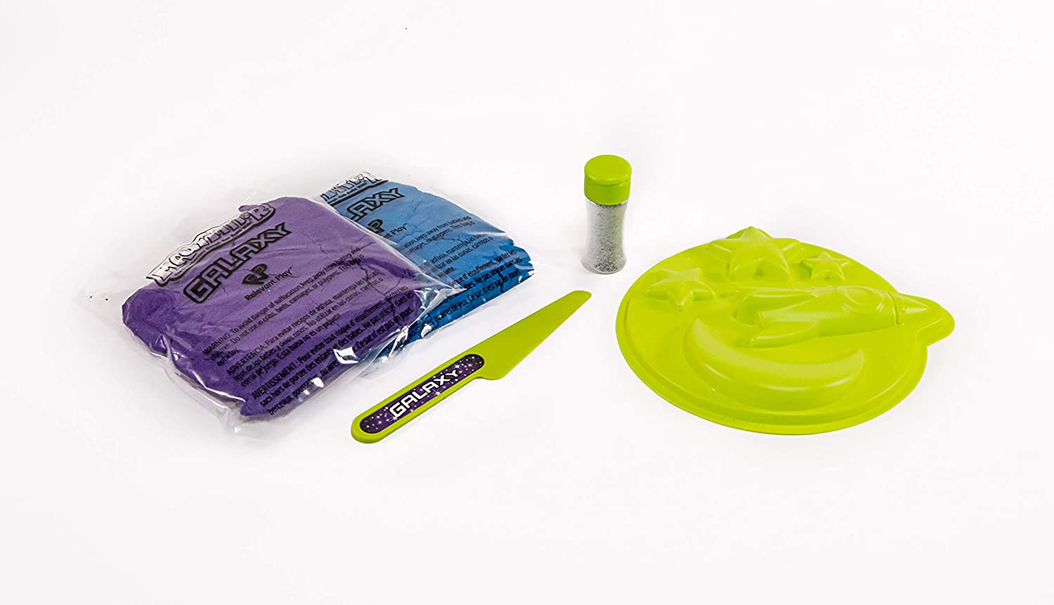 Create an out-of-this-world Mad Mattr experience with the Mad Mattr Galaxy set! Make the Mad Mattr sparkle like the stars with the included glitter. This spacey set includes Blue and Purple Mad Mattr, a Space Mold, a tool, and glitter!