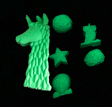 Have a funtastic glowy time creating 6 fun, glow-in-the-dark Mad Mattr molds with Mad Mattr Glow! This cool Mad Mattr set includes glow-in-the-dark Mad Mattr, 6 fun-shaped molds, a tool, and a UV light for instant glow activation!