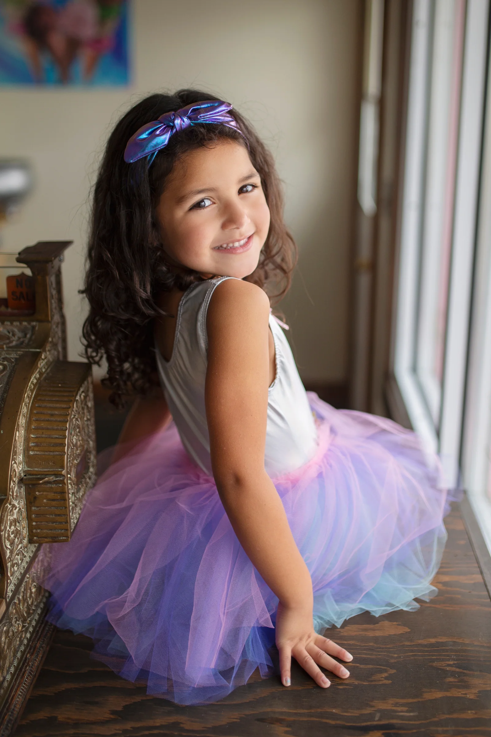 This stunning headband is made of foiled metallic spandex. The metallic fabric allows the headband to turn from purple to blue in different lighting! It is finished with a beautiful bow and is perfect for adding some flair to your outfit!