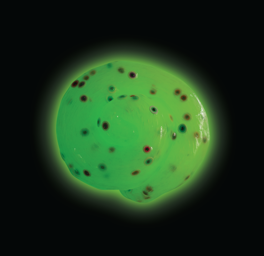 Mysterious eyes peeking out of the darkness? Fear not. This monster’s multitude of colorful eyes will shine through the magical glow to remind you: you are not alone!