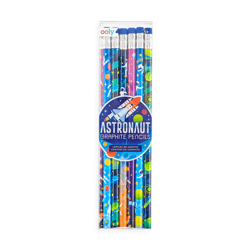 Take your writing and drawing out of this world with the Outer Space Explorer Happy Pack. This pack drawing pack features a set of astronaut erasers, space pencils and a set of star shaped stacking crayons. It’s a perfect art supply set for anyone who has a love for outer space. Take your writing and drawing adventures to the stars with the Outer Space Explorer Happy Pack. This fun art gift set of space themed goodies comes with a set of crayons, graphite pencils and erasers to get a loved one started in artistic adventures. The Stack of Crayons is a set of sacking mini crayons. It’s great for mixing and matching your crayons the way you wish and makes coloring quite compact. The Astronaut Graphite Pencils are a fun space themed set of 12 no. 2 graphite pencils that are great for both writing and drawing. And finally the Astronaut Erasers are a set of 3 colorful pencil erasers shaped like adventurous astronauts. Outer space explorer writing set Set of 12 graphite pencils Stacking crayon set with 12 crayons Astronaut shaped erasers - set of 3 Contained in a plastic poly bag and gift tag for easy gifting Gift pack size 6.25 x 10.75 x 2 inches Suitable for ages 3 and up