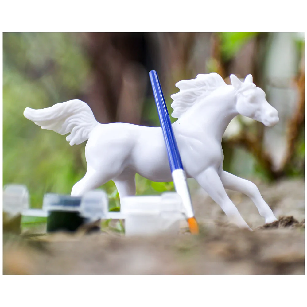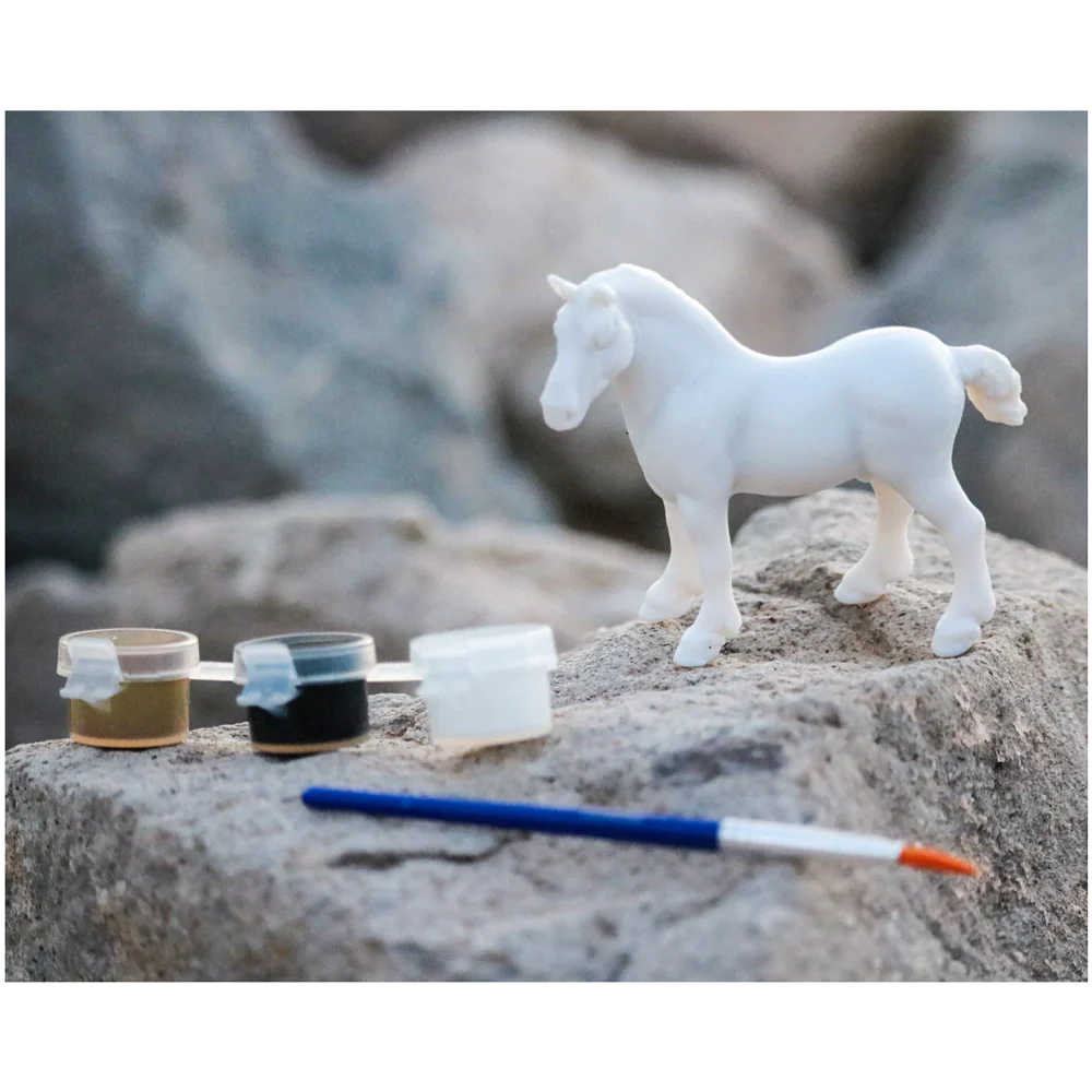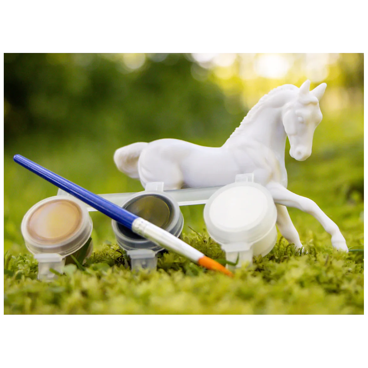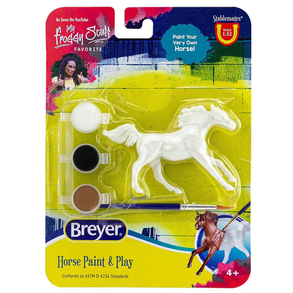 Stablemates painting is a fun activity and loved by Breyer fans of all ages. The horse paint and play series features four different base-coated models - ready to paint. Each is sold individually and comes on a blister card, complete with three paint pots of realistic colors, as well as a paintbrush.