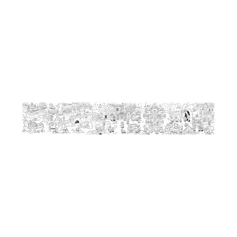 These sea creatures are enjoying their town carnival including ice cream stands and a ferris wheel. This jumbo coloring book has a fold out page measuring 72 inches by 12 inches letting one or more kids color at the same time. The big hardback coloring book simply unfolds the coloring page for a continuous scene that can be colored with colored pencils, colored pens, markers and more.