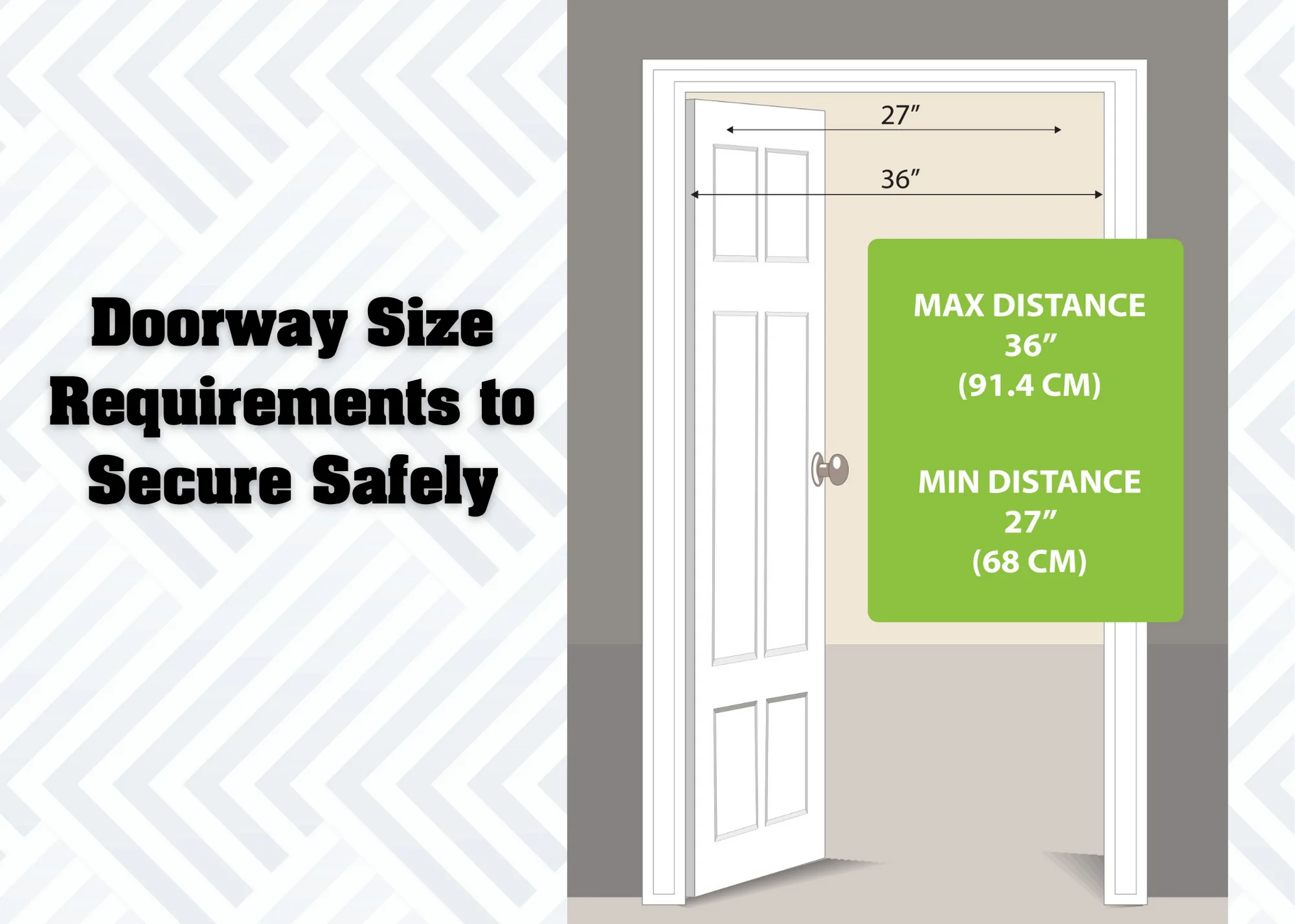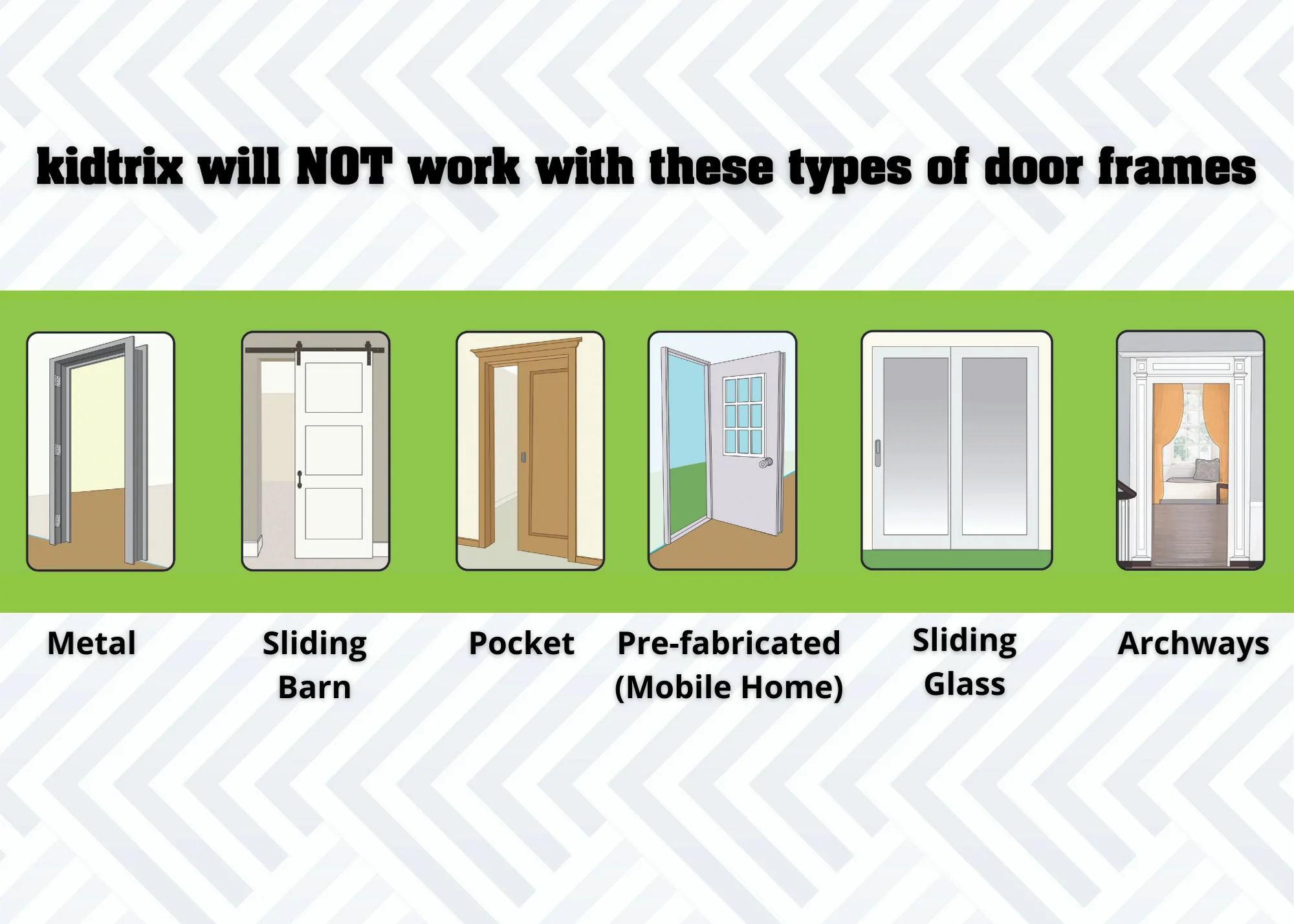 Rainy day? Not enough time to drive to the park? Not ready to invest in a large swing set for the backyard? The Kidtrix Doorway System is your solution so you can inspire active play each and every day! This indoor swing set is installed in 5 minutes or less with a sturdy, metal doorway bar and two vice grips! Once installed, the kids can use the included swing, or add on the additional accessories: hammock and a monkey bar for fun and active play inside the home! There is no hardware needed to set up the bar; just a compatible door frame! The entire install is as easy as 1-2-3. (1) Simply place 2 vice grips at the correct height, (2) insert the bar to extend across the doorway, and (3) hang the swing! The included mesh swing can be adjusted for kids of all sizes, up to 150lbs. Compatible doorways include standard builder grade wood frame with a minimum exterior width of 3.5 inches. Minimum width from inside of door jamb to outside of door frame should be 3 inches, and maximum width from inside of door jamb to outside of door frame should be 5 inches. Doorway bar fits doorway sizes 27”-36” wide. Non-compatible doorframes include: metal, sliding barn, pocket, prefabricated (mobile home), sliding glass and archways. All accessories can hold up to 150 pounds! Specs + Material No hardware necessary Adjustable metal bar for doorway: 27”-36” Gravity wedge system with 2 vice grips 1 mesh swing 2 hanging straps with adjustable height options 1 nylon storage bag for swing