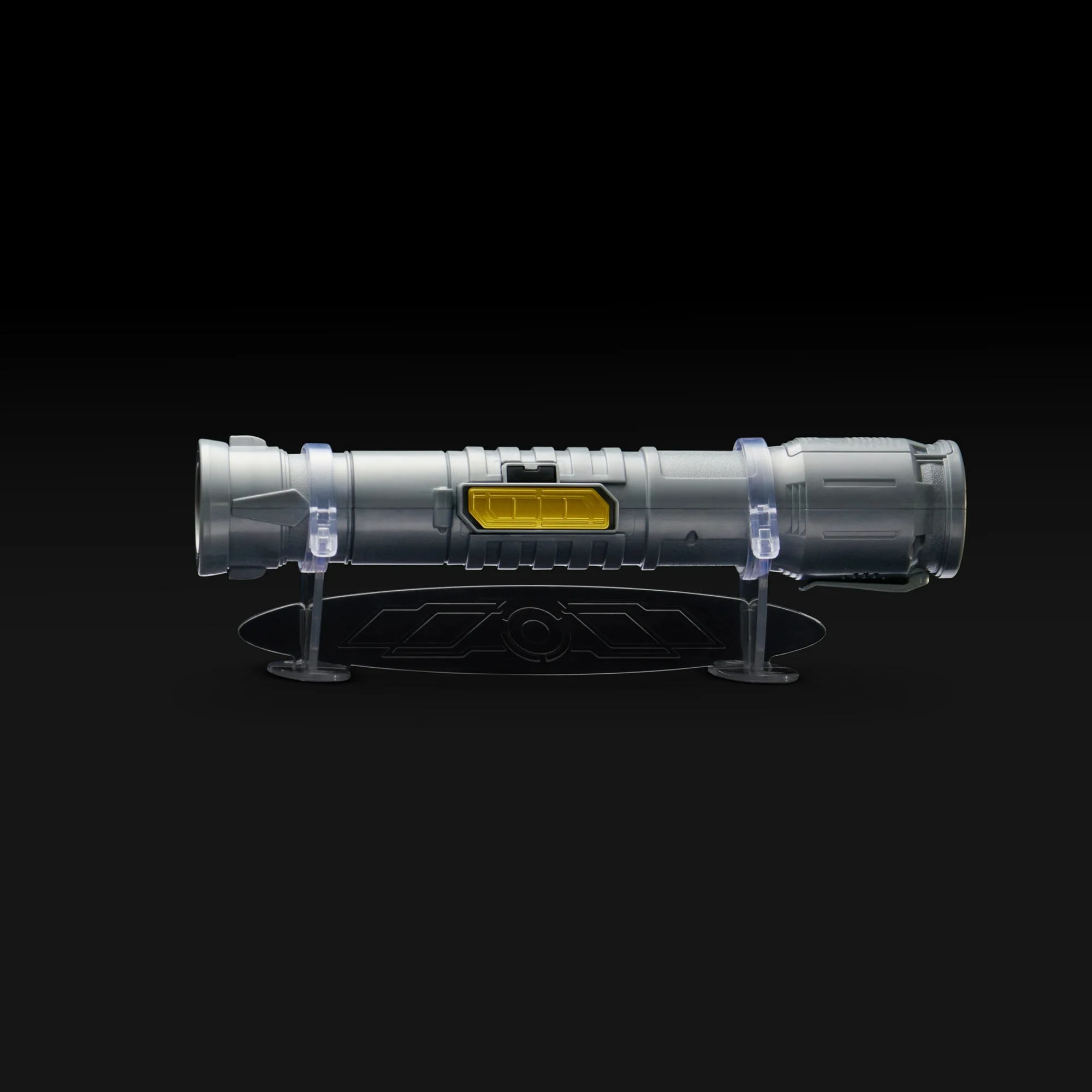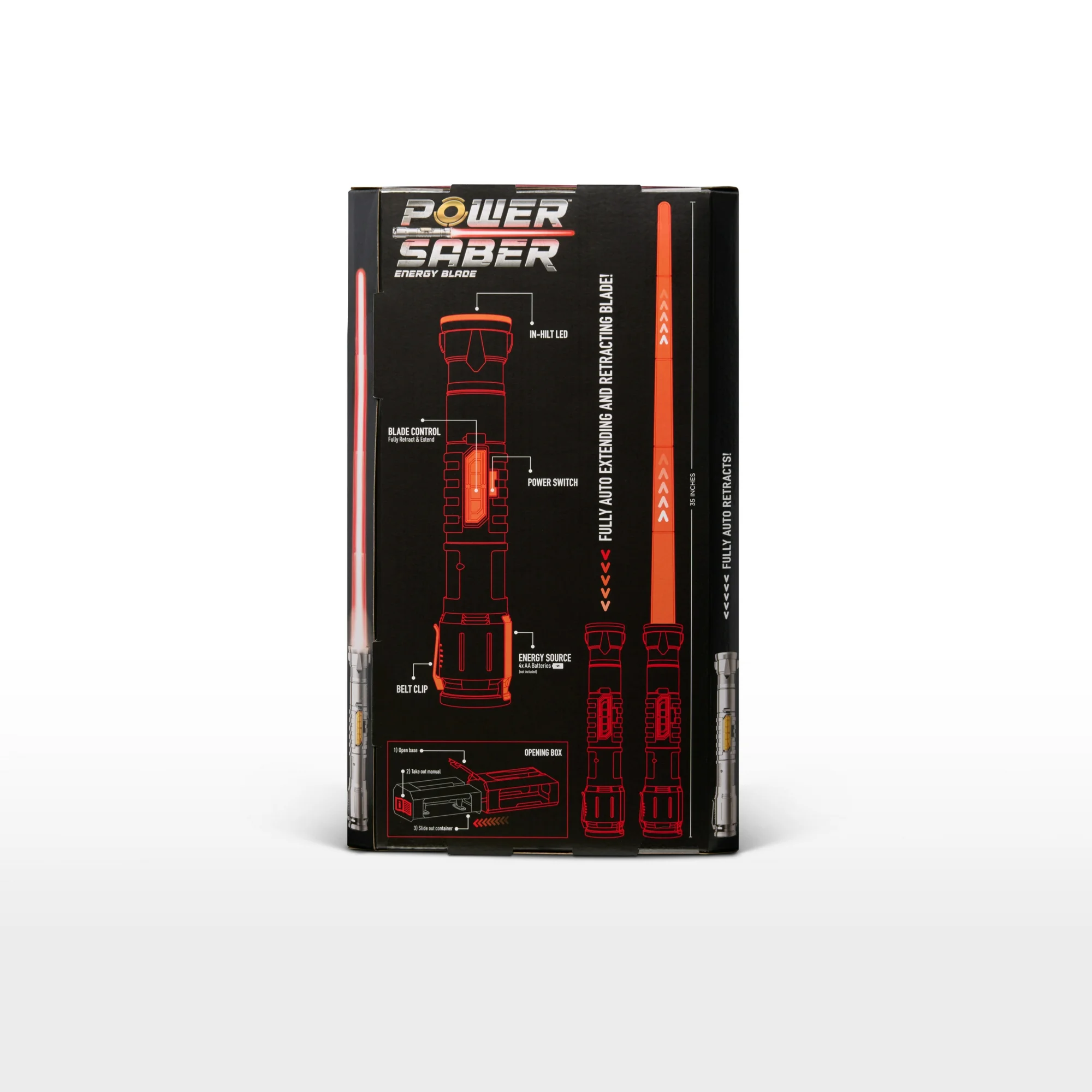 Power Saber is the world’s first fully auto extending & retracting saber. With motion based sound effects, flash on clash & in an in-hilt LED, this saber delivers the most realistic experience. Extend the saber to 35’’/90cm and get ready for battle! After battle, the Power Saber can be displayed on the included stand or carried around with the belt clip. This saber is suitable for kids ages 6 and up and recommended for any fan. Available in red & green, choose your side! Requires 4 x AA batteries (not included).