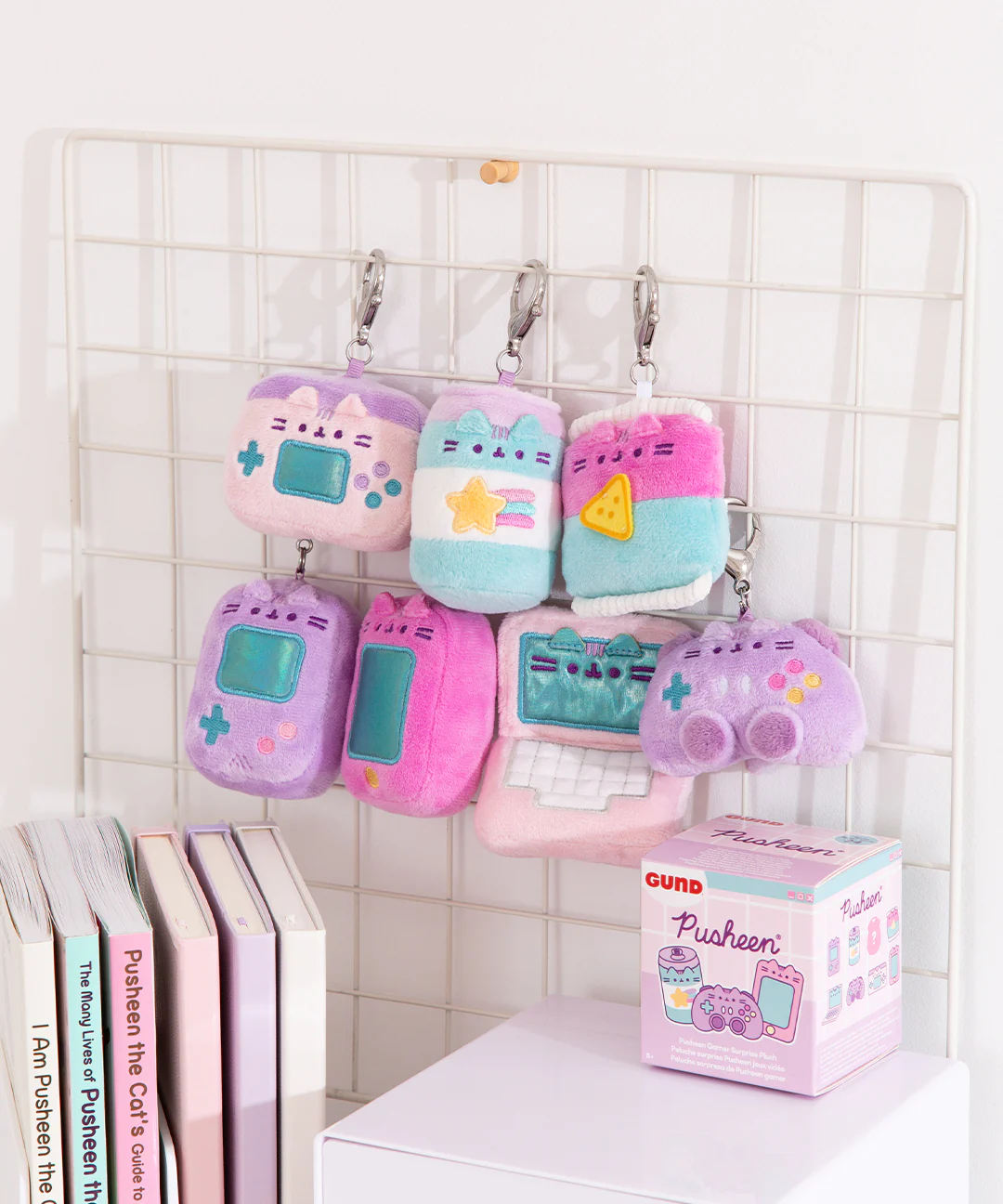 Level up with Pusheen! This series of miniature surprise plushies features 8 vibrant and irresistibly cute designs, each showing Pusheen as an adorable gaming accessory or treat for the gamer in all of us. From laptops, handheld controllers, and colorful consoles to soda cans and bags of chips, Pusheen is ready to play! Unbox and collect all eight, including a rare mystery style. Each plush includes a metal keychain for secure attachment to bags and backpacks. Ages 8 and up. Returns will only be accepted with the sealed box and bag intact. Pusheen is the sweet, lazy, plump tabby cat that loves to bring smiles and laughter to people worldwide in her popular webcomic, which is followed by over 10 million social media fans. GUND Pusheen plushies and squishy toys bring this lovable tubby tabby and her adventures with Sloth, Stormy, Pip, Cheek, and more to your home, desk, or wherever you need a smile. GUND Pusheen stuffed animals make adorable home decor and are wonderful gifts for cat lovers, Pusheen fans, and collectors of kawaii toys. Blind box toys are also fun classroom gifts, claw machine prizes, stocking stuffers and more. Explore the whole GUND Pusheen plush collection!