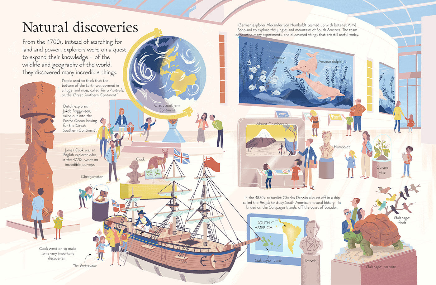 Set off into the unknown with explorers through the ages. Lift the flaps to discover incredible journeys, from dangerous ocean voyages by intrepid conquistadors, to the Apollo 11 mission to be the first on the Moon.