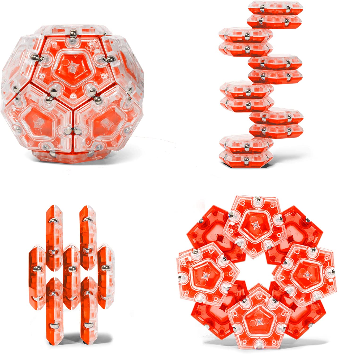 Geode is a geometric sphere made from 12 pentagonal tiles. each tile has 5 magnets that spin so the pieces will connect from any angle. Smash the sphere and stack the tiles into unlimited shapes.