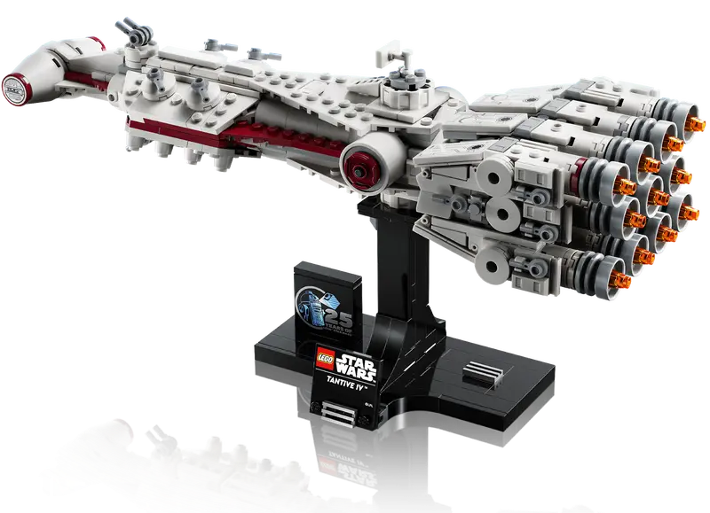 Build the excitement you felt when you watched the opening scene of Star Wars: A New Hope all over again with this buildable LEGO® brick model of the Tantive IV starship. Feel the power of your creative force as you capture instantly recognizable details of an iconic starship, first seen being chased by a Star Destroyer. Place your Star Wars™ vehicle on the buildable stand and add the nameplate and a LEGO Star Wars 25th anniversary brick to complete an attention-grabbing centerpiece. This buildable display model is part of the mid-scale LEGO Star Wars Starship Collection. It makes a fun treat for yourself or a gift for other Star Wars fans and memorabilia collectors. A unique LEGO Star Wars set for adults, the Tantive IV offers a rewarding creative building experience that can be made even more fun with the LEGO Builder app. The app allows you to zoom in and rotate your builds on screen in 3D, track your progress and save all your sets in one place. Collectible Tantive IV build-and-display model – Recreate the excitement of the opening scene of Star Wars: A New Hope as you build this mid-scale LEGO® brick version of an iconic starship Authentically detailed Star Wars™ vehicle – Use LEGO® bricks to capture iconic features of the Tantive IV, as seen in Star Wars: A New Hope, including its 11 engines and turbolasers Made for display – The buildable stand has a nameplate and LEGO® Star Wars™ 25th anniversary brick, and it’s designed to display the Tantive IV Part of the LEGO® Star Wars™ Starship Collection – This set is part of a collectible series featuring mid-scale buildable models of iconic Star Wars starships Gift for Star Wars™ fans and memorabilia collectors – Treat yourself or give this 654-piece adults’ LEGO® building set as a birthday gift to a friend who loves Star Wars Build your LEGO® Star Wars™ starship with app assistance – With the LEGO Builder app, you can build in 3D, track your progress, save all your sets in one place and even build together as a team From a galaxy far, far away to your home – Collectible LEGO® Star Wars™ sets for adults are designed for you, the discerning hobbyist who enjoys fun, hands-on creative building projects Build and display – This LEGO® Star Wars™ vehicle measures over 6 in. (15 cm) high, 12.5 in. (32 cm) long and 4 in. (11 cm) wide