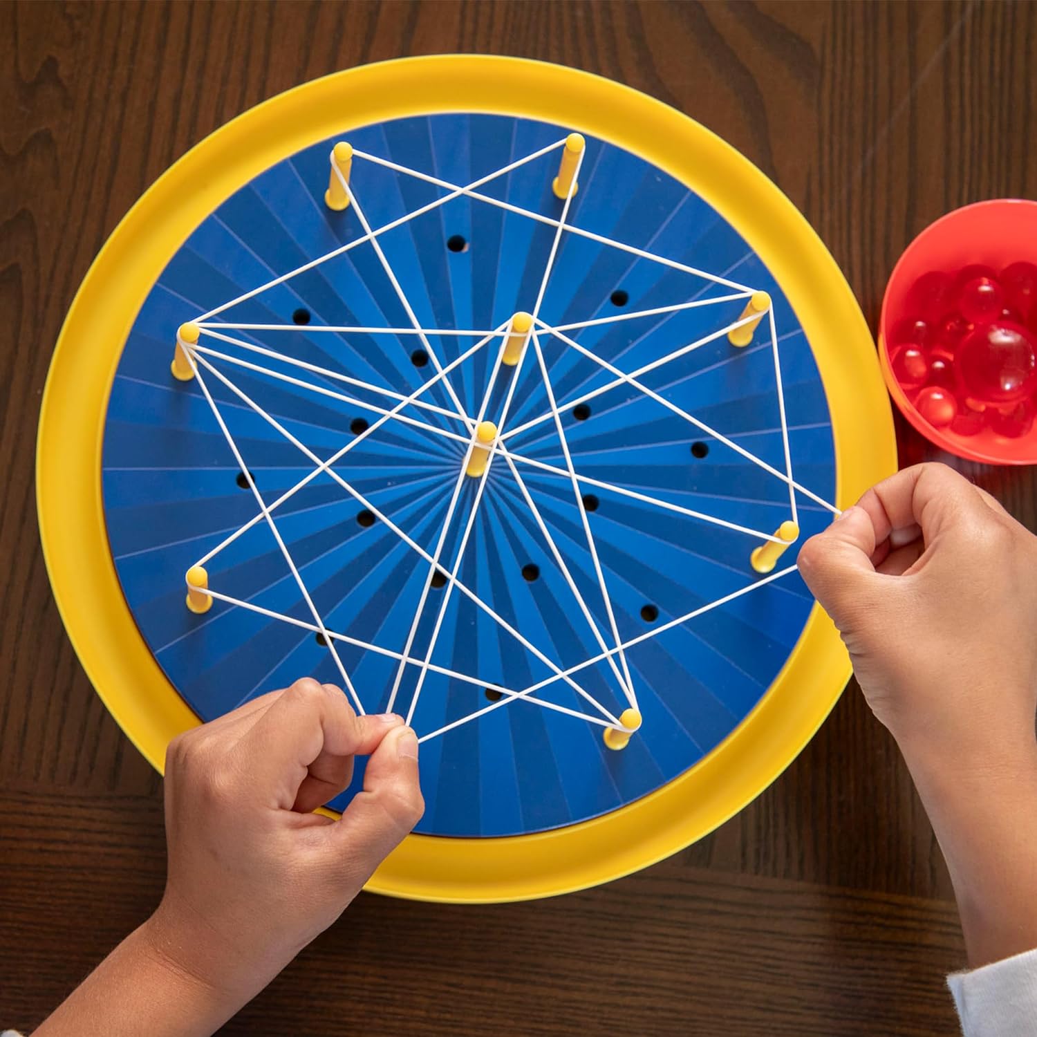 Get ready to walk the Tightrope with this simple yet intense strategy board game! Players will flip for this family board game that’s fun for both kids and adults. It's time to showcase your decision-making skills and dazzle your friends and family with your hand-eye coordination! In this thrilling game, players take turns placing marbles on rubber bands that sway and bounce, adding an extra level of suspense to each move. Will you find the perfect spot for your marbles, or risk sending them tumbling off the tightrope and right back into your pile? The goal is simple - be the player with the least amount of marbles to secure victory and steal the show of your next game night! Tightrope is more than just a fun and entertaining game. It's a skill-building experience that enhances decision-making skills and improves hand-eye coordination. This makes it an ideal choice for kids aged 6 and up, as well as adults and families looking for a stimulating and engaging game night activity. Whether you're a board game aficionado or just starting out, Tightrope will keep you on the edge of your seat! Featuring 1 game board, 24 pegs, 20 stretchy silicone bands, 4 marble cups, 64 small marbles, and 4 big marbles, Tightrope has everything you need to dive into the game right away. The average playtime of 20 minutes ensures that you get a quick burst of excitement without losing steam. Whether you're searching for board games for kids 6-8 ages, board games for adults and family game nights, or specifically strategy board games, Tightrope ticks all the boxes. It's time to add this must-have addition to your collection of kids board games and create memorable moments that will last a lifetime!