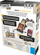 Timeline Twist reimagines the popular Timeline game in a more fun way: each game is now a cooperative challenge, but you don't have to be a history buff to play! In this new edition, players team up, communicate and coordinate to find the best strategy to play all 36 cards in the game. The team's goal is to get rid of all the cards the players have in hand, either by placing as many events as possible in the right order on the timelines, or by discarding them wisely.