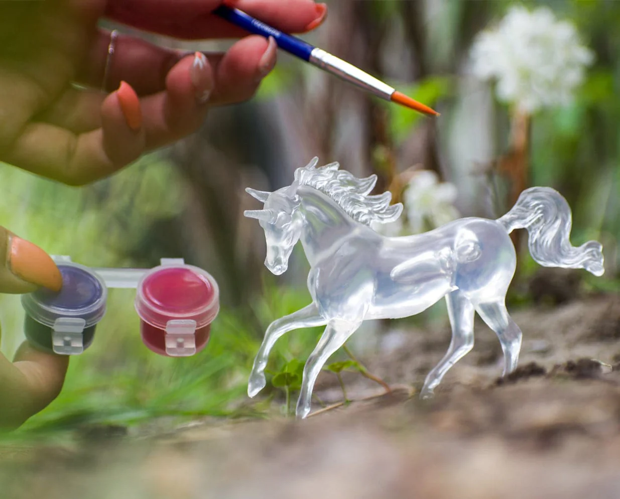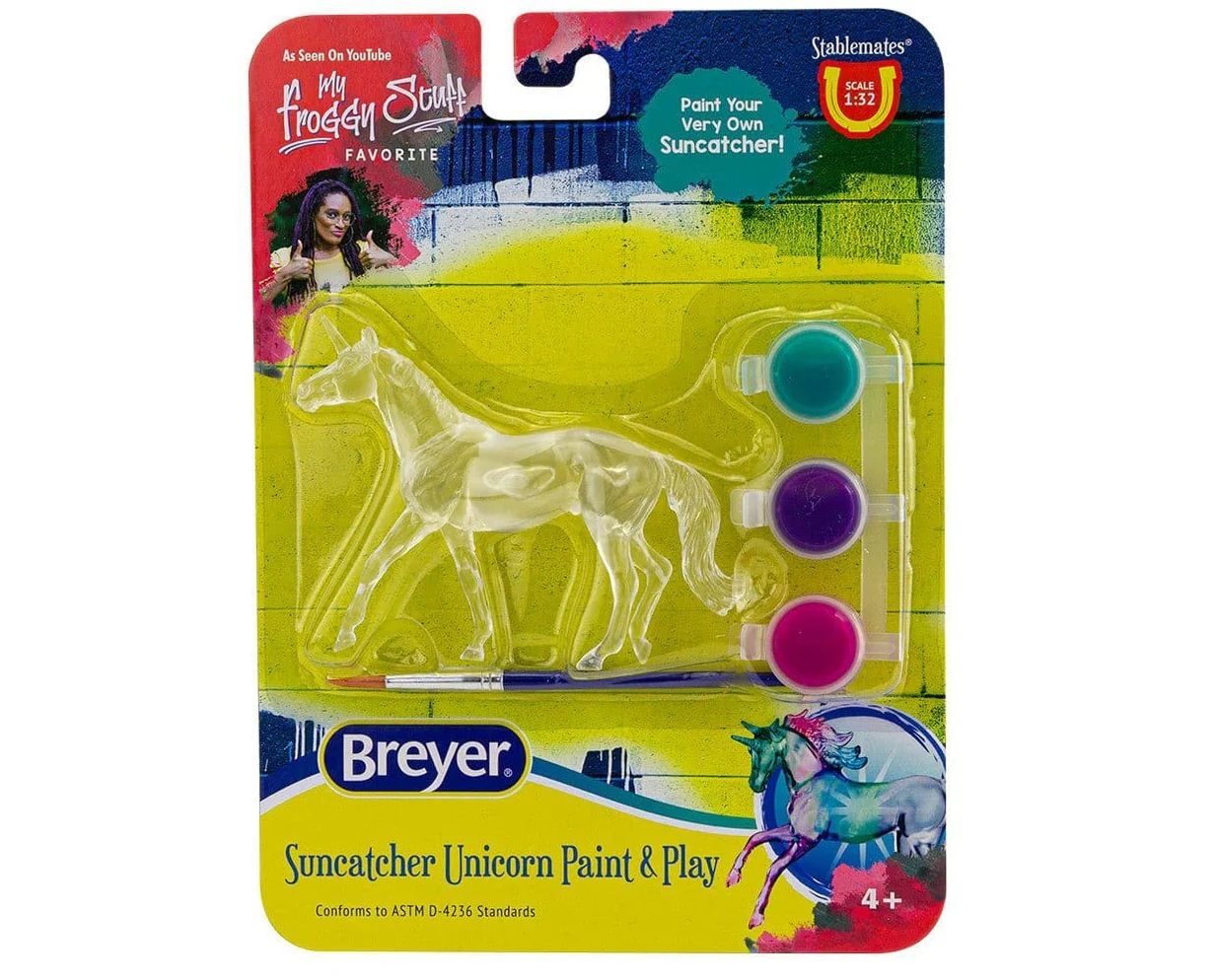 Breyer fans love Stablemates painting and they love unicorns. Enter our new Suncatcher Unicorn Paint & Play - the perfect pair! Each Stablemates unicorn model is clear, and when painted with the special paint, they become dazzling in the sunlight, adding to their magical presence.