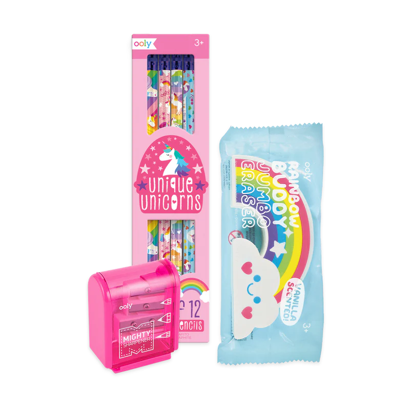 There’s more than just rainbows and unicorns with this colorful happy pack! That’s because there is a Mighty Sharpener in it as well! You can stay sharp all day long while sketching and jotting all the wonderful ideas you have and with the jumbo scented eraser, you can wipe out not just a few mistakes, but all the mistakes!