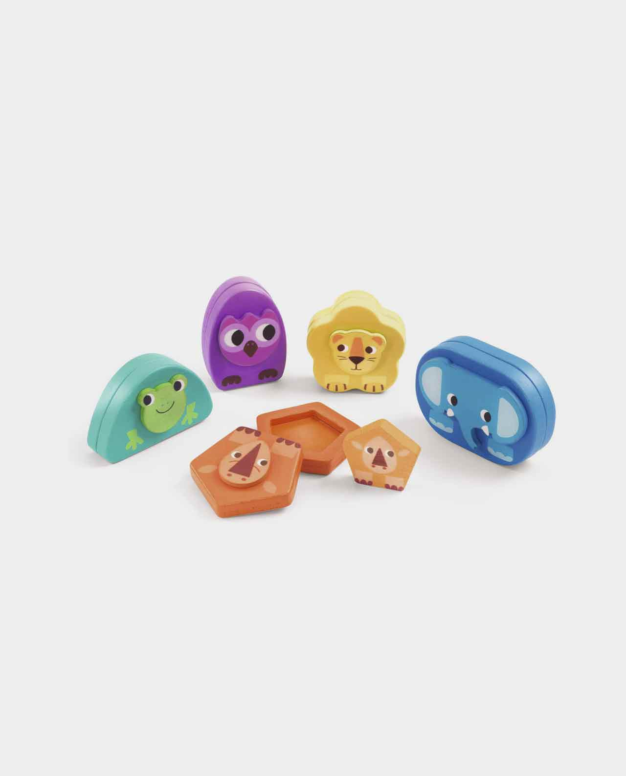 This adorable magnetic hide-and-seek game features five wild animals that open to reveal a baby in the parent's corresponding geometric shape.