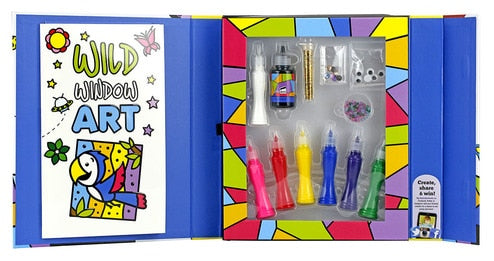 Give boring old windows a splash of color with the special peel off, stick-on glass paints in this kit! Have fun painting on your windows and watching the sunlight shine through your art in dazzling colors. And the paint is easy to remove afterward, so you can go wild without worrying about making a mess!