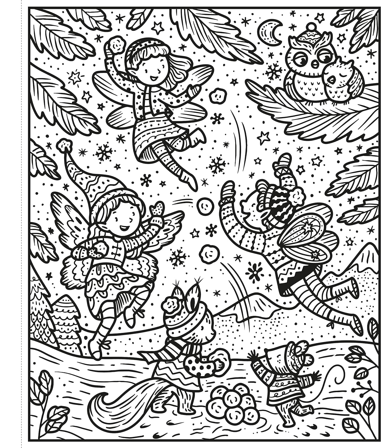 Filled with wintry whimsy, from ice-skating unicorns to snow castles, northern lights and other fantastical delights. Use the brush provided to sweep water over the designs and festive colors magically appear! A mess-free way to keep children busy for long winter nights and for the holidays. Simply tuck the waterproof back flap under each page as it's painted, to stop water from seeping through to the rest of the book.