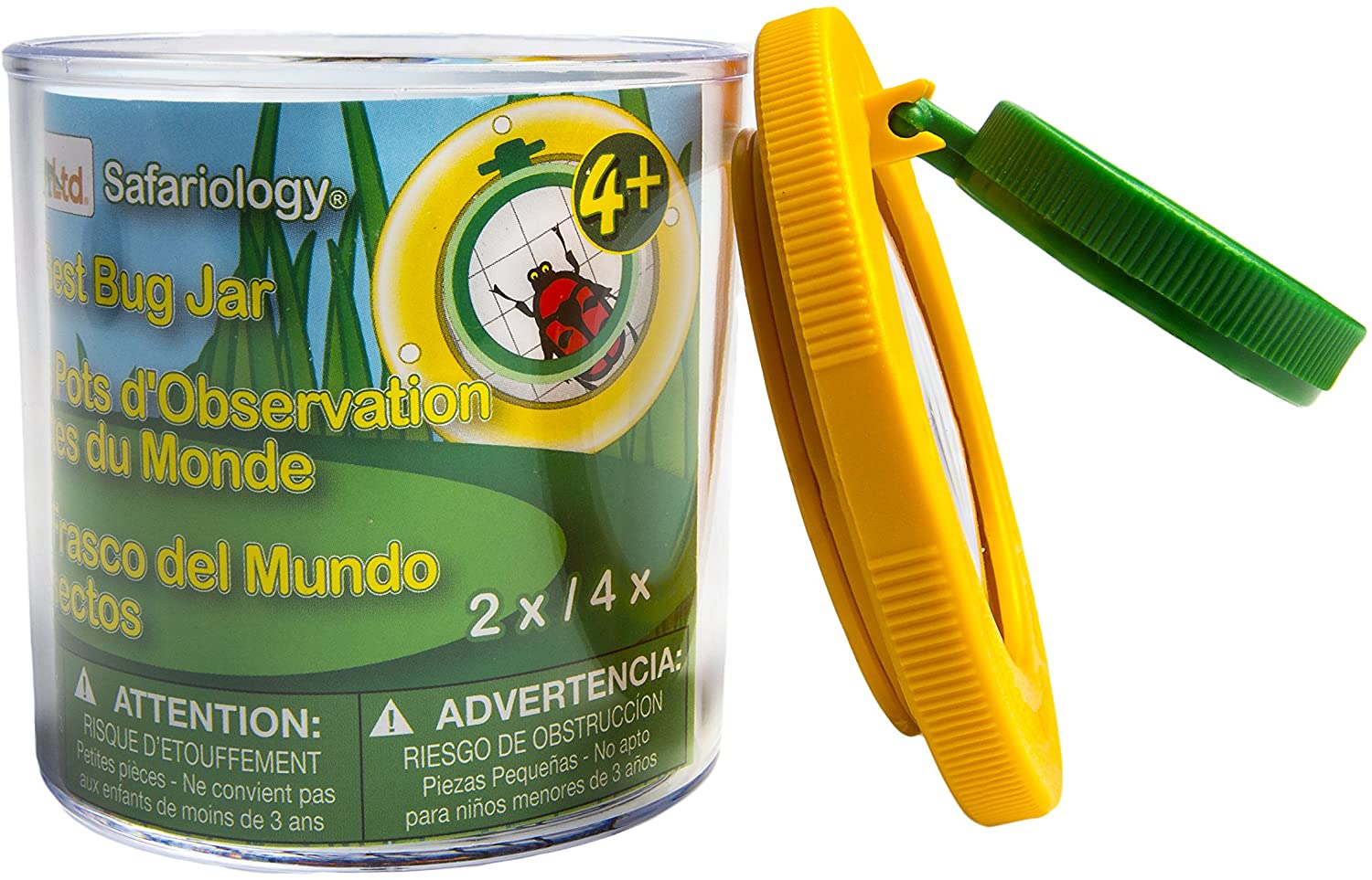 Size and Color: The bug jar is 2 ½ inches tall and 2 ¾ inches in diameter, about the same as an individual yogurt container. An attractive yellow lid and flip-down magnifier completes the set.