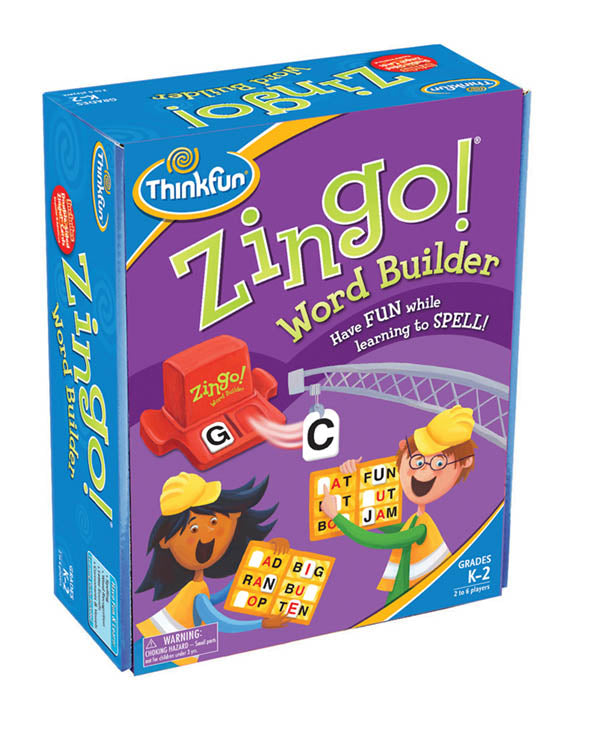 This word building version of Zingo! is the perfect confidence booster for early readers! Ideal for players who are just learning how to put letters together to form words, It’s great for teaching spelling and vocabulary. With two levels of play, this word game is designed to engage and support both beginner and more experienced readers. Just slide the Zinger and claim tiles to fill your Zingo! card with three letter words – pure Zingo “F-U-N!”